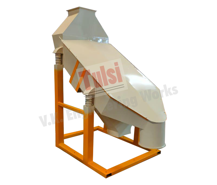 1) Tulsi Expeller Industry: Afterwards, they are conveyed to the primary aspirator. The aspirator has a series of steps which the beans bounce on. The fan/cyclone system is set to only vacuum off the hulls while the meats fall through via gravity into the conveyor.